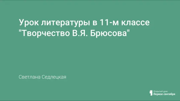 Урок по творчеству В.Я. Брюсова – урок-исследование творческих исканий поэта-символиста на разных этапах его жизни. Урок включает чтение наизусть стихотворений поэта учениками и учителем, а также анализ стихотворений. Работа построена с учетом выполнения учениками опережающих индивидуальных заданий.