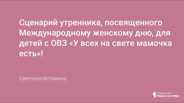 Представлен сценарий утренника, посвященного Международному женскому дню, для детей с ОВЗ.