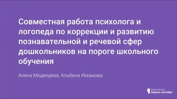 Совместная работа психолога и логопеда по коррекции и развитию познавательной и речевой сфер дошкольников на пороге школьного обучения