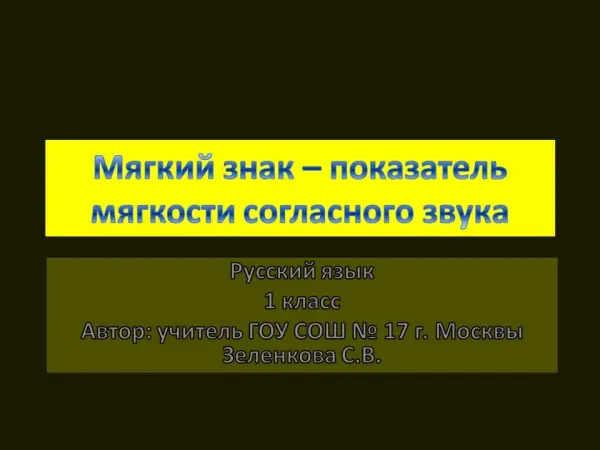 На уроке дети обобщают знания о букве «ь» и способах обозначения мягкости согласного звука на письме, закрепляют навык написания слов с мягким знаком. Урок проходит в занимательной игровой форме, используются проблемные ситуации, задания на смекалку.