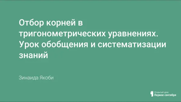 Поиск решения задачи всевозможными способами – это захватывающий творческий процесс. Каждый должен научиться формировать в себе навыки самоконтроля для того, чтобы диагностировать ход решения задач. Сегодня я предлагаю вам, вернутся в мир тригонометрии. Более подробно становимся на решении тригонометрического уравнения с отбором корней. Цель урока в том, чтобы каждый из вас наполнил свой личный багаж знаний: теоретической базой и практическими навыками.