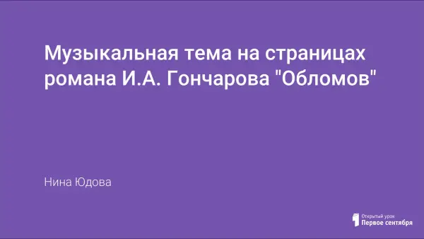 Особую роль в романе И.А. Гончарова играет музыка. Обломов влюбляется в Ольгу, слушая ее пение, необыкновенно вдохновенное и прекрасное. Любовь к музыке – вот то общее начало, которое заставило зародиться чувству, сблизило ненадолго этих совсем непохожих людей. Материалы урока помогут учащимся глубже заглянуть во внутренний мир главных героев романа, почувствовать значимость музыкальности героев как одного из способов семантической детализации сюжета.