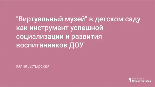 В статье рассматривается роль «виртуального музея» в детском саду как инструмента успешной социализации и развития детей дошкольного возраста.