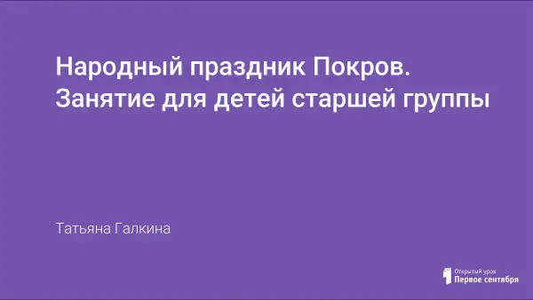В наше время приобщение детей к народному творчеству, искусству, непосредственное участие в национальных праздниках воспитывают в них нравственные чувства, развивают художественное мировоззрение, наполняют эмоциональную сферу ребенка радостью, поднимают настроение, формируют эстетический вкус. Представленный конспект занятия «Народный праздник Покров» знакомит детей с русским народным праздником «Покров», историей его возникновения, традициями и обычаями проведения.