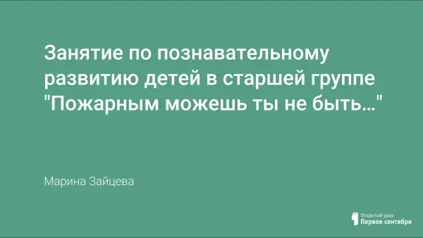 У детей есть представление о том, что огонь бывает «добрый» и «злой». Главная задача воспитателей – помочь детям утвердиться в этих знаниях, предостеречь от беды и при этом не просто сказать: «Этого делать нельзя», но и объяснить, к чему это может привести. Представленное занятие проводится в форме игры. Цель занятия: закрепить знания детей о профессии пожарного; выявить знания детей о роли огня, как положительную, так и отрицательную стороны, и о правилах пожарной безопасности.