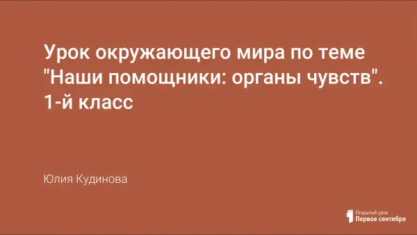 Урок окружающего мира формирует знания об органах чувств. Цель: развивать речь, логическое мышление, умение сравнивать и делать выводы; воспитывать культуру здоровья; формировать положительное и адекватное представление о себе у учащихся; расширять кругозор у детей; научить детей различать, характеризовать органы чувств, ставить опыты, рассуждать, делать выводы, развивать интерес в познании себя.
