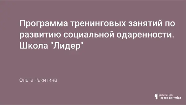 Программа была разработана в рамках психологического сопровождения ученического самоуправления гимназии № 69 г. Липецка. Отсюда целью ее стало выявление и развитие лидерского потенциала участников тренинга, повышение групповой сплоченности и развитие навыков эффективного взаимодействия в команде и в целом развитие социальной (лидерской) одаренности подростков.