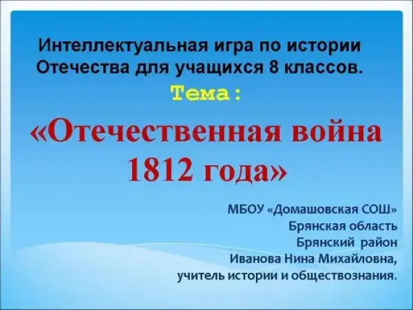 Интеллектуальная игра по истории "Отечественная война 1812 г." 8-й класс