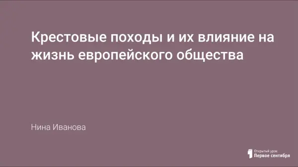 Урок формирует представление о Европе и Востоке на основе фактов, причин, целей и итогов Крестовых походов. Учащиеся анализируют изменение образа жизни европейской и мусульманской цивилизаций при влиянии церквей, устанавливают причины, следствия и значение.