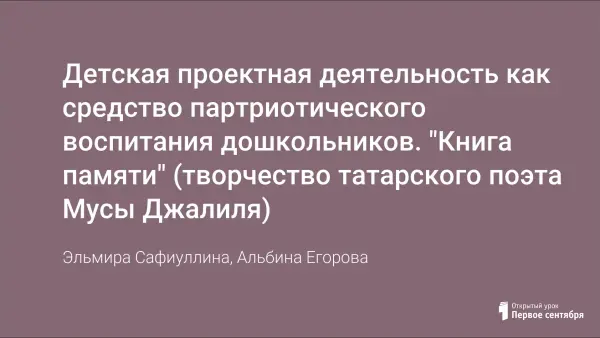 Детская проектная деятельность как средство партриотического воспитания дошкольников. "Книга памяти" (творчество татарского поэта Мусы Джалиля)