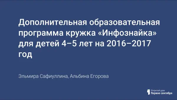Дополнительная образовательная программа кружка «Инфознайка» для детей 4–5 лет на 2016–2017 год