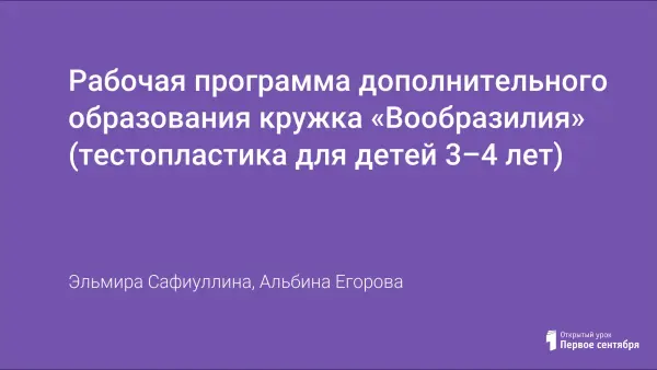 Рабочая программа дополнительного образования кружка «Вообразилия» (тестопластика для детей 3–4 лет)