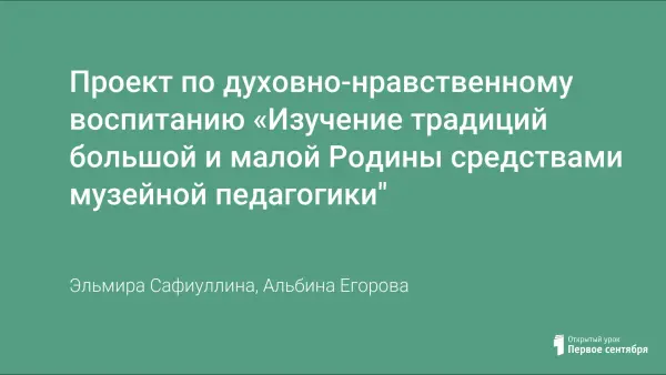 Проект по духовно-нравственному воспитанию «Изучение традиций большой и малой Родины средствами музейной педагогики"