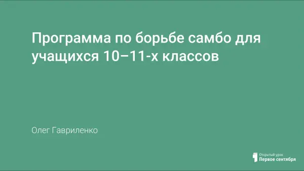 Занятия борьбой самбо рассматриваются многими специалистами в качестве одного из действенных средств физической подготовки подрастающего поколения. Следовательно, имеют большое прикладное значение в физическом воспитании школьников старших классов. В программе выделено большее количество учебных часов на разучивание и совершенствование тактических приемов через игру, что позволит обучающимся идти в ногу со временем и повысить уровень соревновательной деятельности в борьбе самбо.
