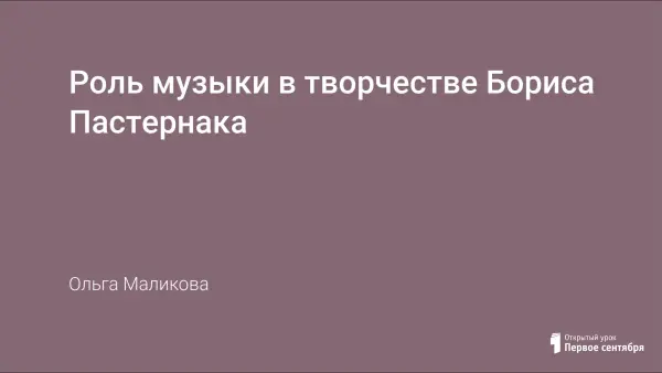 Целью урока является доказательство изначальной музыкальности художественного мира Бориса Пастернака. Под влиянием музыки Александра Скрябина, его философии и проповеднической деятельности юный Пастернак решил посвятить себя музыке. Но понял, что никогда не достигнет высшего мастерства как композитор, и бросил занятия музыкой. Такое отношение Пастернака к творчеству и жизни вообще было скрябинским отношением. Все поэтическое творчество Пастернака – это продолжение музыки Скрябина.