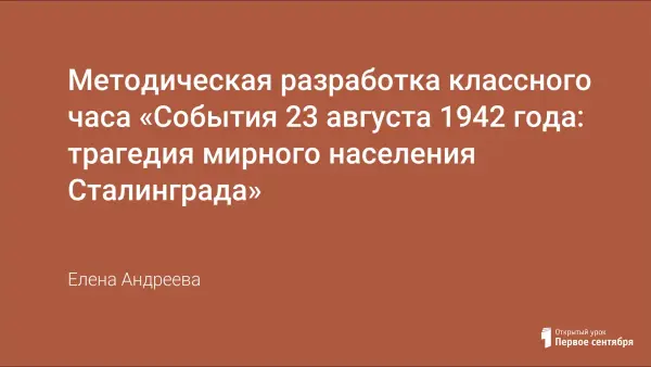 2015 год – год 70-летия Великой Победы. Наш город - это город, у стен которого в годы Великой Отечественной войны во многом решалась судьба человечества. Сталинградская битва – одна из крупнейших битв второй мировой войны. Она продолжалась 200 дней. Донести до современных детей всю трагедию тех далёких страшных событий помогает презентация-сопровождение.