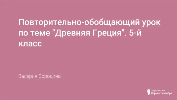 Задачи урока: обобщить и систематизировать знания, полученные учащимися при изучении темы Древняя Греция; показать учащимся, каково значение культуры Древней Греции и её влияние на мировую культуру; помочь осознать вклад эллинов в развитие культуры народов; учить презентовать результаты своего творческого труда.