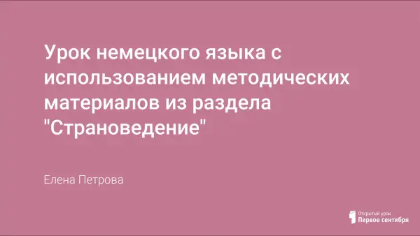 Урок направлен на развитие памяти, творческой активности, устной речи и воспитание уважения к людям и традициям немецкого народа.