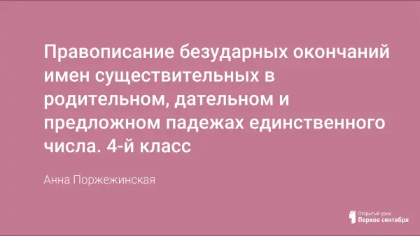 Урок проводится в 4-м классе по программе "Школа Россия". Он закрепляет знания учащихся о правописании безударных окончаний имен существительных единственного числа в родительном, дательном, предложных падежах единственного числа.