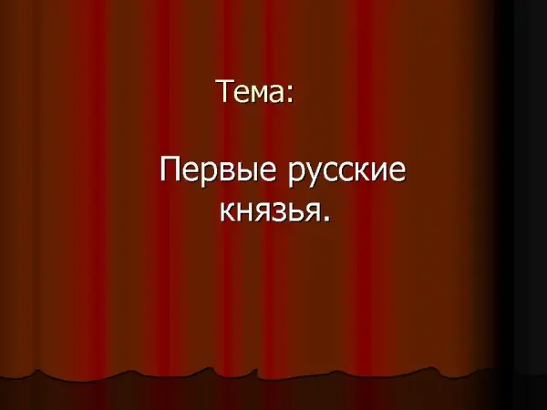 Данный материал предназначен для урока истории в 10-м классе. Учащиеся узнают о роли первых князей в складывании русского государства. Пятеро учащихся заранее готовят презентации, демонстрируют на уроке, класс, по ходу демонстрации, заполняет таблицу: «Деятельность первых русских князей». Далее учащиеся оценивают каждую презентацию по 5-балльной системе. Стихи заранее раздаются ученикам. Иллюстрации взяты в сети Интернета, стихи русских поэтов из разных источников.