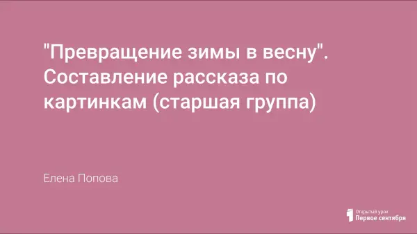 На занятии дети учатся составлять рассказ по сюжетной картине. Развивается логическое мышление, идет установление причинно-следственных связей между превращениями явлений в рассказе. У ребят активизируется зрительная память, ориентировка в пространстве. Прививается любовь к природе.