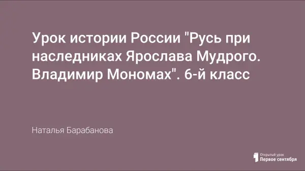 Урок несет в себе воспитательный потенциал, так на первый план выходят личностные результаты изучения темы: испытания чувства гордости за свою Родину, умение определять и высказывать свое мнение, умение слушать, оценивать ответы одноклассников. Урок построен в соответствии с требованиями нового ФГОС. Ключевые понятия: феодальная раздробленность, вотчина, междоусобицы. Материал урока показывает взаимосвязь и последовательность политических решений правителей Ярослава Мудрого и Владимира Мономаха.