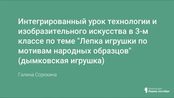 Урок позволяет познакомить с историей возникновения дымковской игрушки, с особенностями дымковского орнамента, приемами лепки, воспитывать интерес к традиционной русской культуре, творчеству народных умельцев.