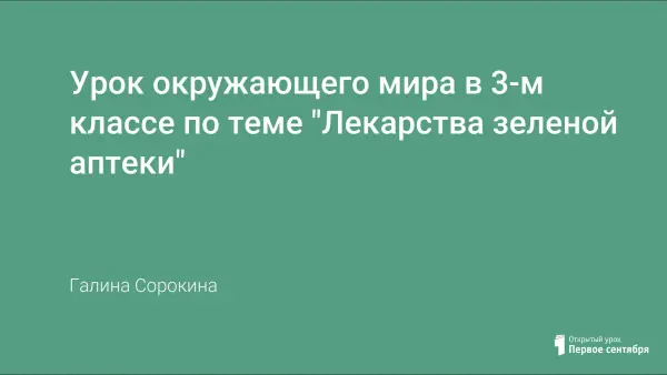 Урок по окружающему миру проведен в форме путешествия в мир лекарственных растений. Он позволяет расширить представление учащихся о лекарственных растениях, познакомить с их свойствами, воспитывать бережное отношение к окружающей природе, к здоровью человека.