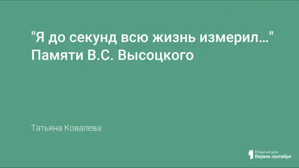 На уроке учащиеся знакомятся с жизнью и творчеством В.С. Высоцкого. Автор расширяет кругозор учащихся, воспитывает чувство патриотизма, дружбы, верности, чести, долга. Учит умению высказывать свою точку зрения и аргументировано ее доказывать. Урок может быть проведен в старших классах (9–11-е классы).