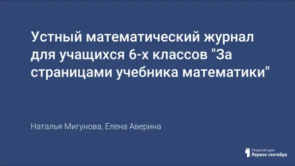Устный математический журнал для учащихся 6-х классов "За страницами учебника математики"