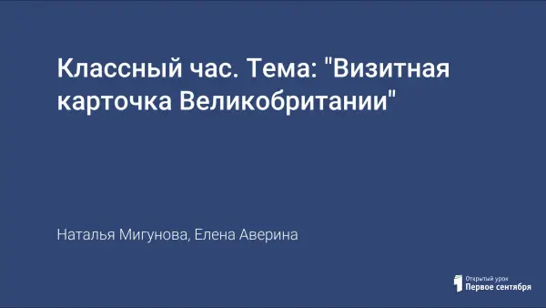 Классный час проводится для учащихся 8–10-х классов, работающих над проектом "Мое открытие Великобритании". Он включает три этапа. Первый – представление слайд-шоу, второй – презентация викторины, третий – создание коллажа. Формы организации работы с учащимися различны на каждом этапе: фронтальная, индивидуальная, групповая. К подготовке классного часа и его проведению привлекаются сами учащиеся.