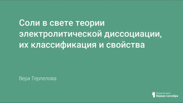 Соли в свете теории электролитической диссоциации, их классификация и свойства