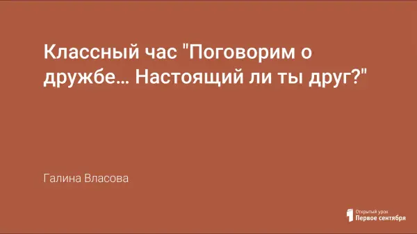 Классный час "Поговорим о дружбе… Настоящий ли ты друг?"