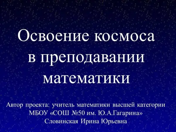 Презентация «Космос в математических задачах» содержит задачи, которые составили мои ученики. В 2013 году в МБОУ «СОШ №50» г.Курска создан отряд «Орбита», который работает по моей авторской программе «Освоение космоса».