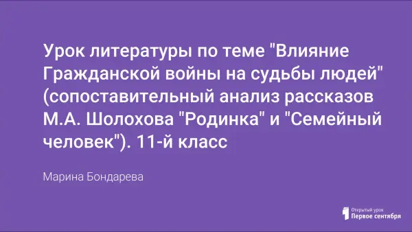 Урок предваряет изучение романа М.А. Шолохова «Тихий Дон». После урока учащимся легче разобраться с перипетиями романа-эпопеи, понять поступки героев, сделать выводы. Рассказы «Родинка» и «Семейный человек» имеют много общего в структурном построении. Содержат в себе трагические страницы истории донского казачества. Однако причины трагедий, произошедших с людьми, разные.