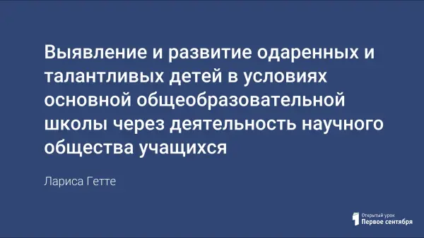Выявление и развитие одаренных и талантливых детей в условиях основной общеобразовательной школы через деятельность научного общества учащихся