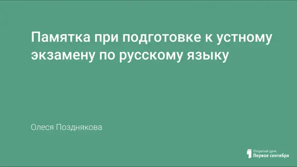 Дана памятка ученикам при подготовке к устному экзамену по русскому языку.
