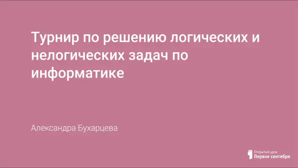 В нашей школе ежегодно проводятся предметные недели. На неделе математики и информатики уже в течение нескольких лет стало хорошей традицией проводить Турнир по решению логических и нелогических задач по информатике (далее – Турнир). Турнир рассчитан на участников из 5–7-х классов. Задачи подобраны с учетом увеличения сложности от класса к классу. Для каждой параллели разработаны разные наборы заданий. Формат проведения Турнира – игра.