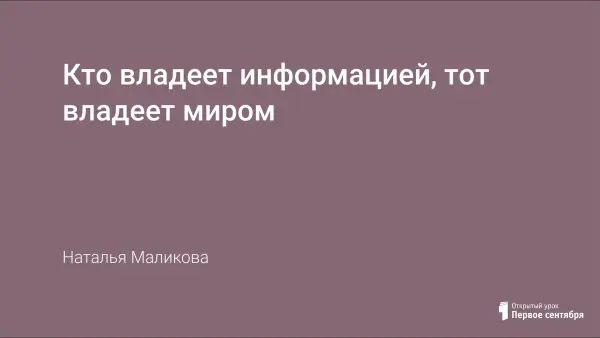 Этот урок-импровизация был показан на краевом этапе конкурса «Учитель года». Но его можно использовать и в качестве обобщающего материала по теме «Алгоритмы» или итогового урока во второй четверти в 3–4-м классе (информатика). На этом уроке повторяются понятия «алгоритм», «информация» и «база данных», приводится целый ряд простых задач. Это дает возможность обобщить знания учеников, способствует развитию познавательного интереса.