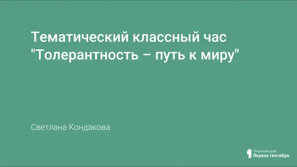 Тематический классный час «Толерантность – путь к миру» объясняет смысл этого понятия, учит терпимости и пониманию, что людей надо ценить, а не оценивать.
