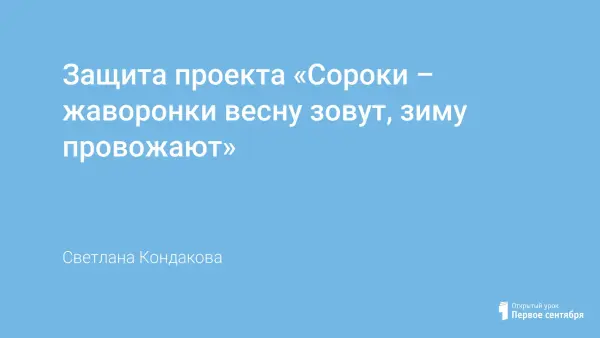 Цель работы: приобщение к истокам русской народной культуры. В результате, мы познакомимся с праздником, научимся делать птичек, использовать заклички в речи. Продукт – творческие работы.