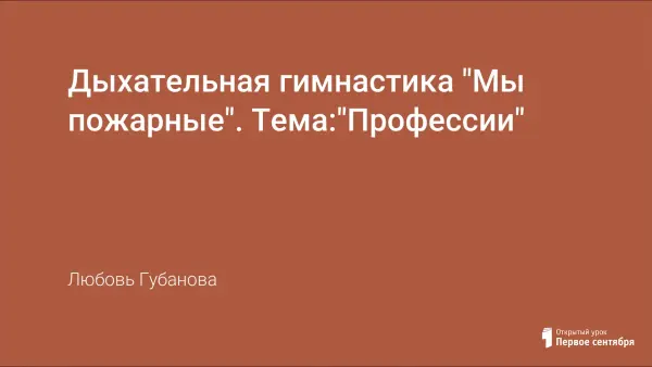 Конспект включает в себя элементы дыхательной гимнастики в сочетании с движениями для развития общей моторики, артикуляционного аппарата. Построение гимнастики закрепляет знание о работе пожарных.
