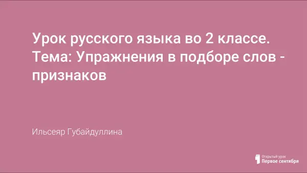 В процессе урока учащиеся должны совершенствовать умения распознавать слова-признаки и слова предметы; повторить изученные орфограммы; формировать навыки грамотного и красивого письма. Для проведения урока используется интерактивная доска, которая значительно помогает повысить эффективность обучения.