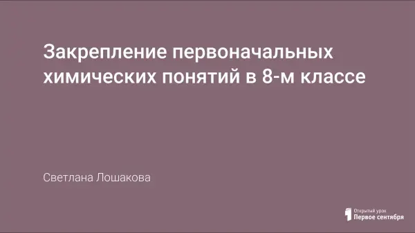 Урок в 8-м классе призван обобщить, систематизировать и закрепить знания о первоначальных физических и химических явлениях и понятиях, о нахождении молекулярной массы веществ и массовых долей элементов в этих веществах, закрепить понятия «простое» и «сложное вещество», автоматизировать умение учащихся определять валентность элементов по химическим формулам.