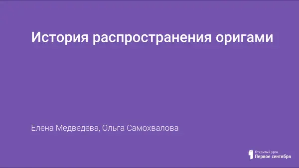 В статья говорится об истории распространения оригами. Раскрывается значение понятия "оригами".