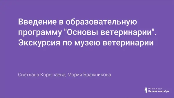 Введение в образовательную программу "Основы ветеринарии". Экскурсия по музею ветеринарии