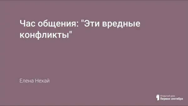 Час общения с учащимися 6-го класса позволяет познакомить детей с понятием «конфликт», рассмотреть с ними причины возникновения конфликтов и попробовать самостоятельно найти выход из различных конфликтных ситуаций. На занятии применяются психологические игры и тестирование.