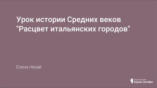 Урок закрепляет знания учащихся о средневековом городе, его устройстве, занятиях населения, управлении городами, борьбе городов с сеньорами. Знакомит учащихся с историей некоторых итальянских городов и их расцветом в период Крестовых походов. Элементы театрализованной игры урока развивают творческие способности учащихся.