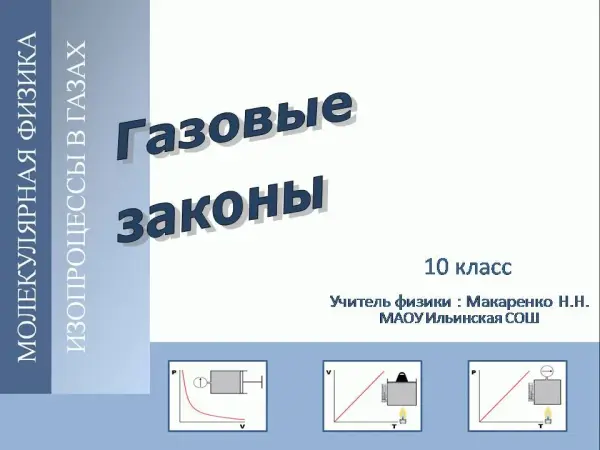 На уроке с помощью уравнения состояния идеального газа исследуются процессы, в которых масса газа и один из параметров – давление, объем или температура – остается постоянным, а изменяются только остальные два, и получаются теоретически газовые законы для этих условий изменения состояния газа: закон Бойля–Мариотта, закон Гей-Люссака и закон Шарля. В конце урока обучающимся предлагается мини-тест, чтобы они определились в своих знаниях полученных за урок, а также проверили свои умения.