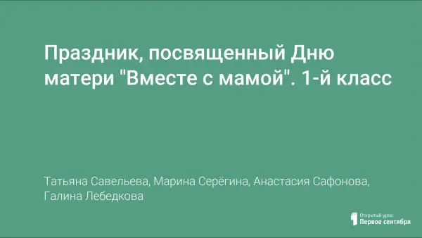Внеклассное мероприятие для 1-х классов "Вместе с мамой" посвящено Дню матери и направлено на объединение детей, вовлечение родителей в школьную жизнь, воспитание нравственных качеств. Праздник построен таким образом, что каждый ребенок принимает в нем участие. Мамы, приглашенные на праздник, являются не только зрителями, а активно участвуют в конкурсах вместе с детьми.